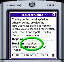 When entering a Hotsync ID for the purposes of registering software, it's important to key it in exactly. Some characters that people commonly mistype include lowercase L versus the number one versus lowercase i (l/1/i), and the letter O versus the number Zero (O/0). Also 'hidden' spaces at the beginning or end of the name can cause problems.